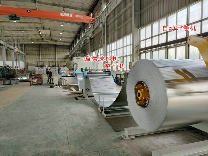 4、設備操作簡便,自動化程度高:在沖壓生產過程中,只需要在觸摸屏上輸入材料的厚度、寬度以及下料圓片的直徑、送料步距等參數后,即可計算出送料的距離以及沖壓間距,操作簡便,真正實現了全自動化操作使用。